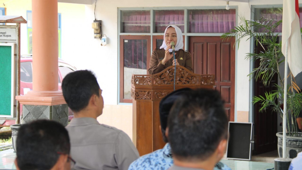 Bupati Bojonegoro, Dr Hj Anna Muawanah, saat beri sambuatan dalam acara Rapat Koordinasi (Rakor) Tim Penanganan Konflik Sosial, di Balai Desa Ngampel Kecamatan Kapas. Kamis (04/03/2019).