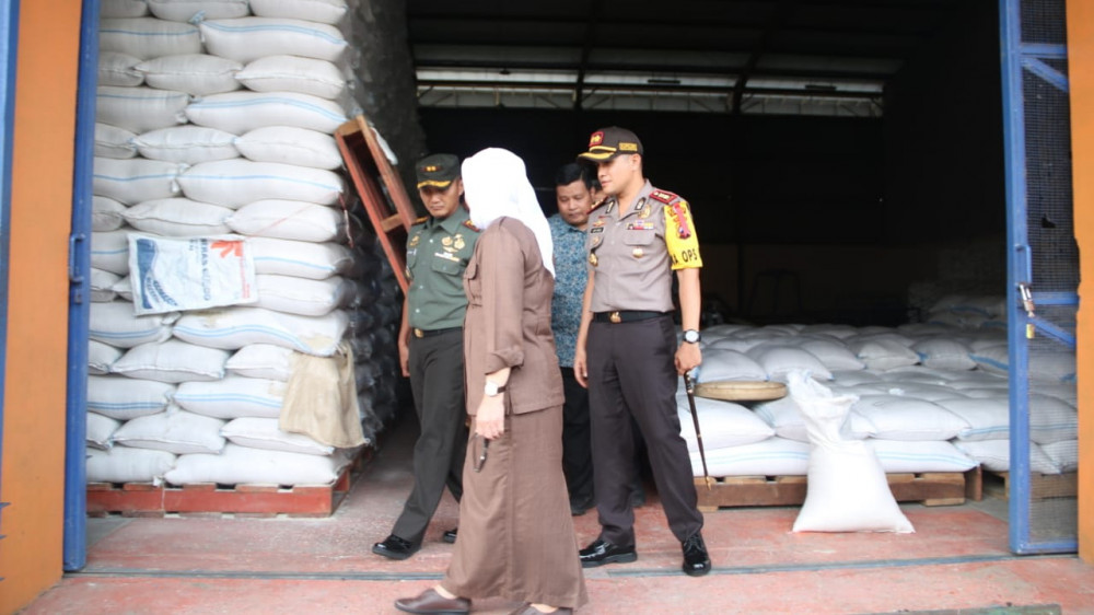 Bojonegoro - Jelang bulan suci Ramadan, Kapolres Bojonegoro AKBP Ary Fadli SIK MH MSi bersama Dandim 0813 Bojonegoro Letkol Arh Redinal Dewanto SSos, dan Bupati Bojonegoro, DR Hj Anna Muawanah, pada Kamis (04/04/2019), lakukan pengecekan stok atau persedian beras di Gudang Bulog yang berada di Desa Sumengko Kecamatan Kalitidu.