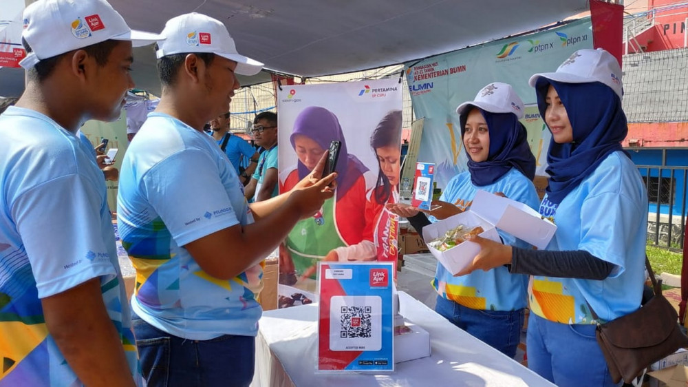 Hanya dengan melakukan scan QR Code, pengunjung dapat menggunakan saldo di aplikasi Link Aja dan menjelajah kuliner di sejumlah booth mitra binaan PT Pertamina (Persero).
