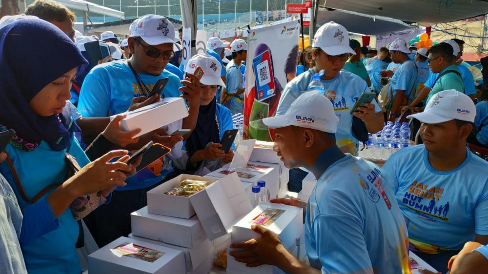 Dalam kegiatan HUT BUMN 2019 seluruh booth UMKM PT Pertamina (Persero) yang menyediakan 3.800 porsi kuliner tampak tak pernah sepi pengunjung.