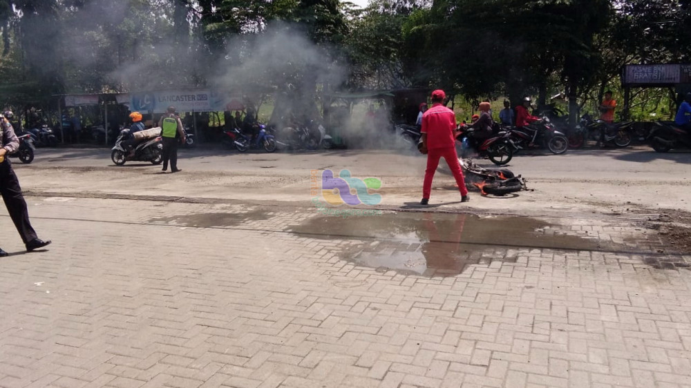 Selanjutnya setelah usai, pemilik sepeda motor tersebut hendak menghidupkan motornya, namun motor tersebut tidak bisa menyala dan tiba-tiba ada percikan bunga api yang akhirnya menyulut selang kran bensin dari tangki sepeda motor tersebut sehingga apinya membesar.