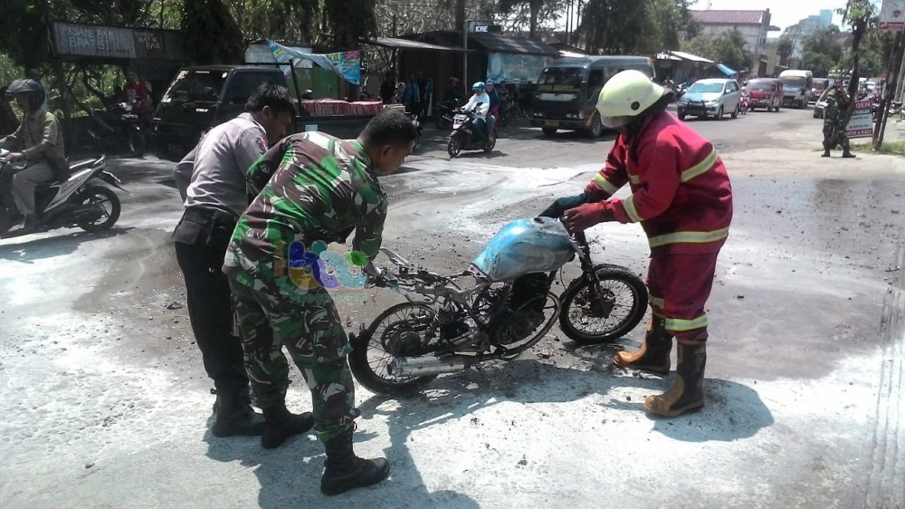 Settelah petuggas pemadam kebakaran tiba, kobaran api yang membakar sepeda motor tersebut akhirnya bisa dipadamkan.” kata Kapolsek.