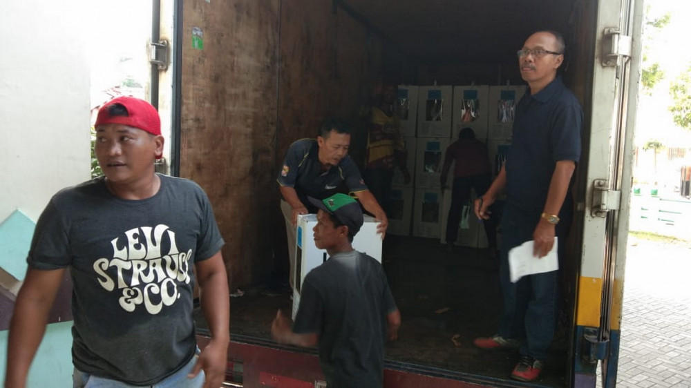 Distribusi logistik tersebut diangkut menggunakan lima unit armada, dari PT Pos Indonesia.