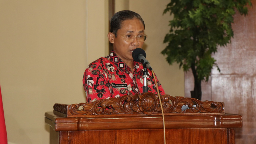 Plt Kepala BKPP Kabupaten Bojonegoro, Djoko Lukito SSos MM, saat beri sambutan dalam pembukaan acara Diklat Kabupaten Layak Anak, di gedung Angling Dharma Pemkab Bojonegoro. Kamis (11/04/2019)