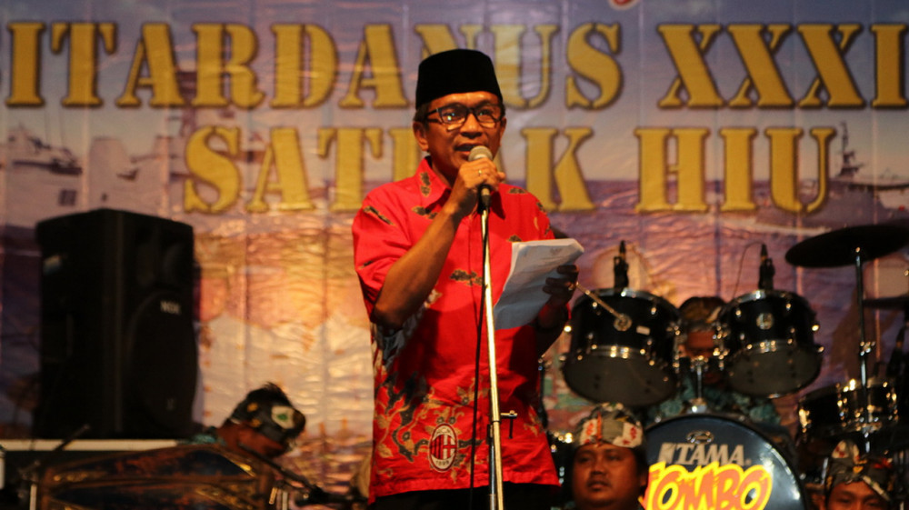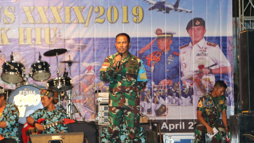 Komandan Satlak Hiu Letkol Laut (T) Andry Kuswoyo ST MTr (Hanla) saat beri sambutan dalam acara malam inagurasi Latsitardanus ke-39, di lapangan SMPN 1 Bubulan Bojonegoro. Kamis (11/04/2019) malam.