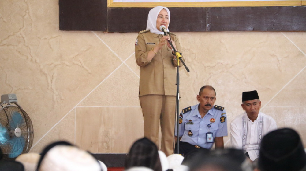 Bupati Bojonegoro, DR Hj Anna Muawanah, saat beri sambutan dalam acara Isra Mikraj, di Lembaga Permasyarakatan Kelas II A Bojonegoro. Senin (15/04/2019)
