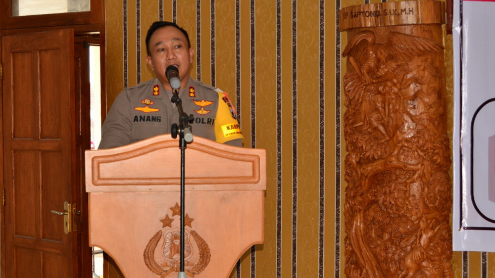 Kapolres Blora AKBP Antonius Anang SIK MH saat beri sambutan dalam acara Forum Silaturahmi Komponen Masyarakat Blora, yang digelar di Aula Arya Guna Polres Blora Rabu (24/04/2019)