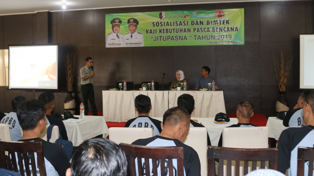 Bojonegoro - Pemerintah Kabupaten Bojonegoro, melalui Badan Penanggulangan Bencana Daerah (BPBD) Kabupaten Bojonegoro, pada Selasa (30/04/2019) bertempat di Hotel Bonero, menggelar sosialisasi dan Bimtek Kaji Kebutuhan Pasca Bencana (Jitu Pasna), di lingkup Pemkab Bojonegoro.