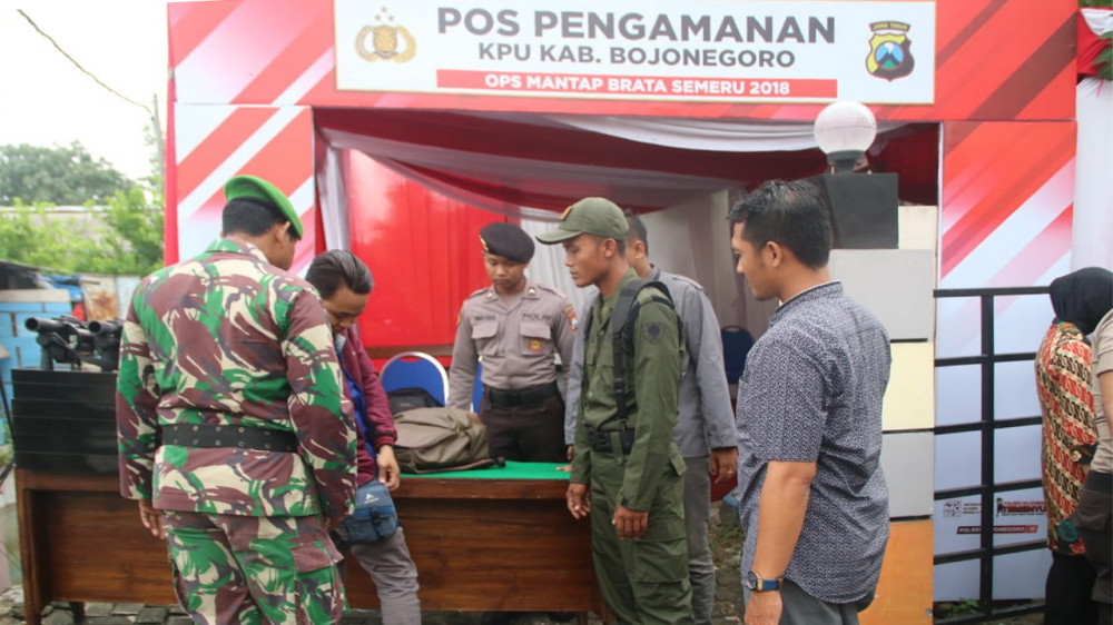 Aparat Gabungan di Bojonegoro Jaga Rekapitulasi Hasil Penghitungan Suara di KPU