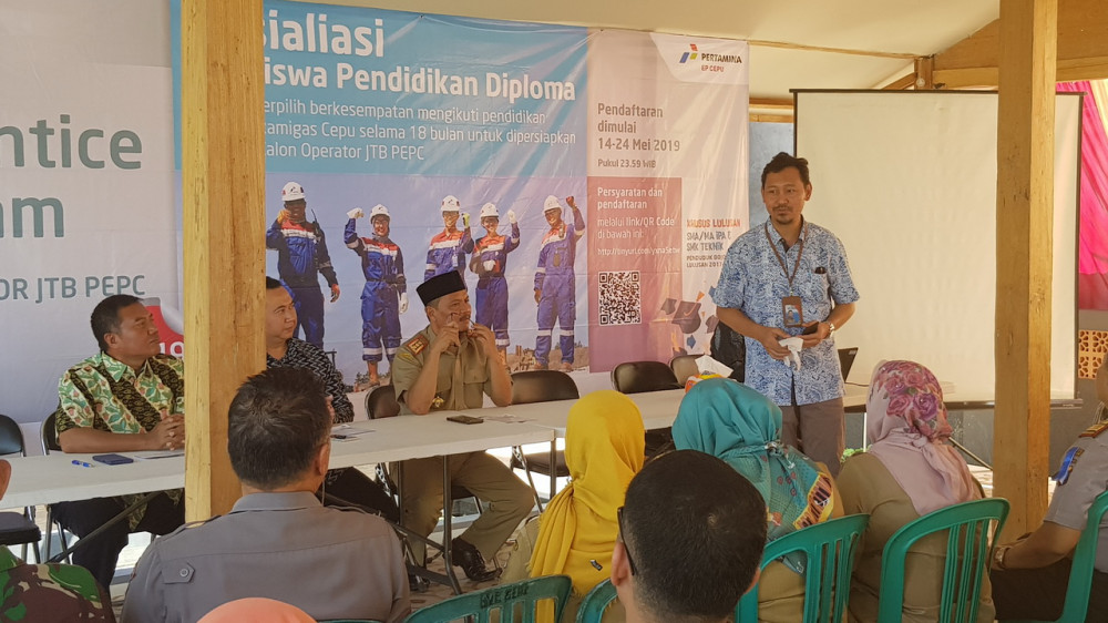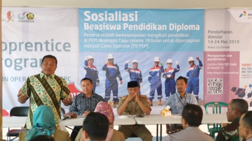 Jambaran -Tiung Biru (JTB) Site Office & PGA Manager PEPC, Kunadi dalam dalam sosialisasi program beasiswa yang digelar di Gedung Sekretariat Ademos, Bojonegoro, pada Selasa (14/05/2019/2019), menuturkan bahwa kegiatan tersebut merupakan program Human Resources Pertamina EP Cepu untuk membina putra-putri terbaik Bojonegoro yang akan dididik selama 1,5 tahun di PEM Akamigas.
