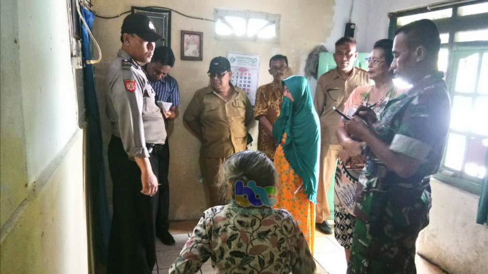 Petugas saat lakukan identifikasi, jenazah korban TMJ (81) warga Kecamatan Bojonegoro Kota, yang ditemukan meninggal dunia gantung diri, Selasa (14/05/2019)