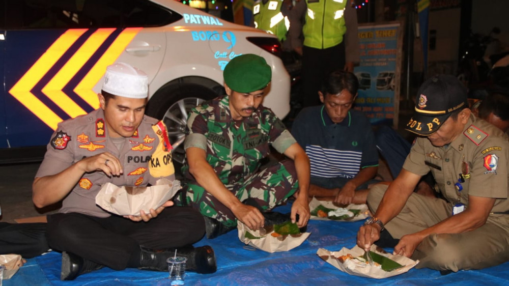 Setelah melaksanakan kegiatan Patroli Oklik, rombongan berhenti di terminal Rajekwesi Bojonegoro untuk melaksanakan sahur bersama. Di terminal, Kapolres bersama anggota berbagi nasi bungkus kepada tukang becak, tukang ojek, dan masyarakat yang ada di terminal Rajekwesi Bojonegoro. (red/imm)