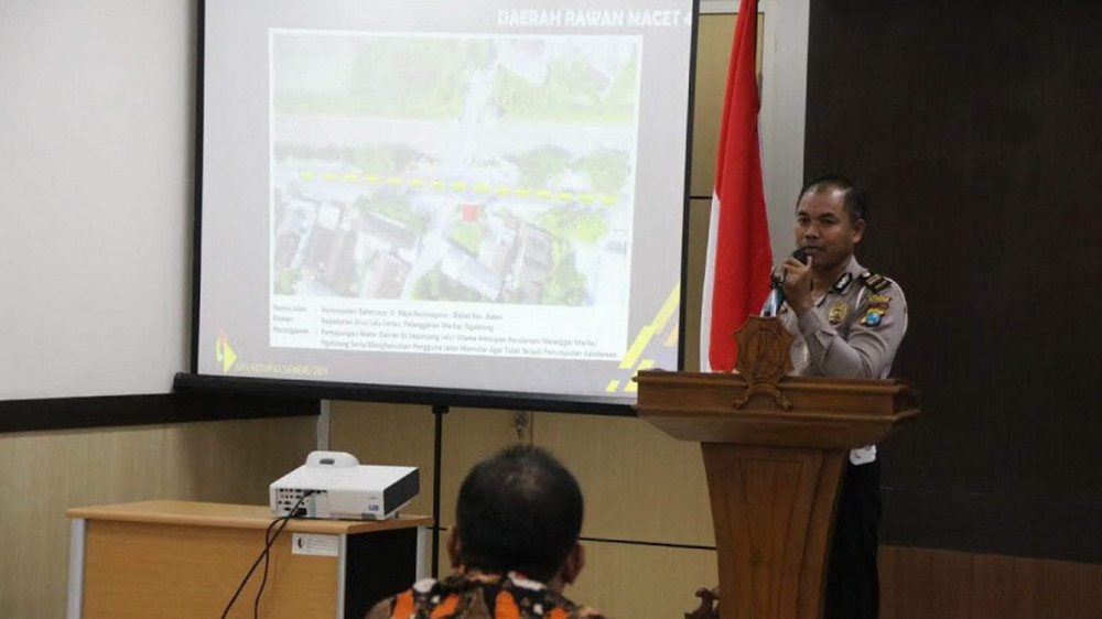 KBO Sat Lantas Polres Bojonegoro, Iptu Jadmiko, saat memeberikan sambutan dalam rakor Kesiapan Operasi Ketupat 2019, di Partnership Room, lantai 4 Gedung Pemkab Bojonegoro. Kamis (23/05/2019)