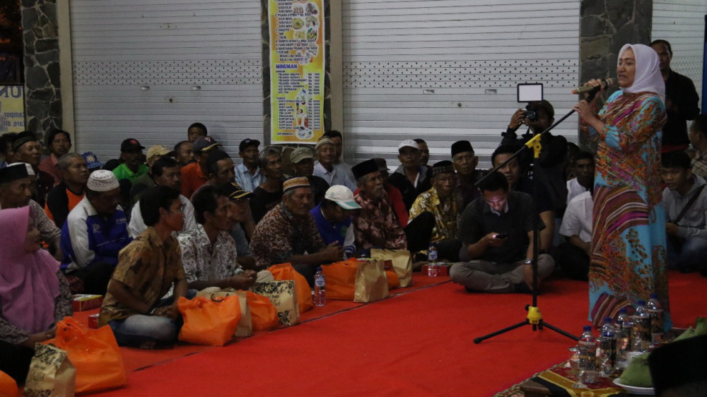 Bupati Bojonegoro Dr Hj Anna Muawanah, saat beri sambutan dalam acara Safari Ramadhan, di Taman Rajekwesi Bojonegoro. Jumat (24/05/2019)