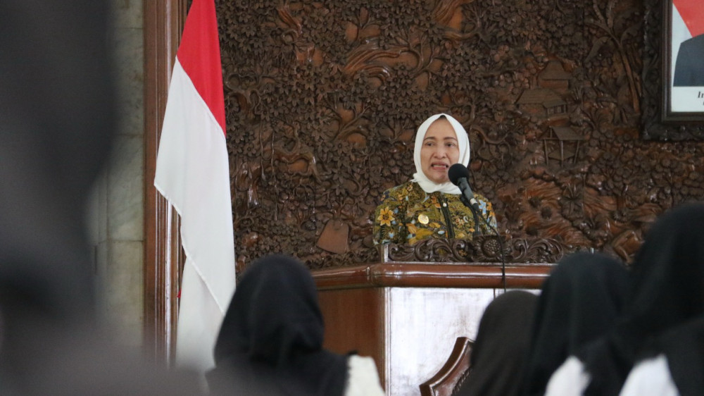 Bupati Bojonegoro DR Hj Anna Muawanah, saat beri sambutan acara penyerahan SK kepada CPNS di Lingkup Pemkab Bojonegoro. Jumat (24/05/2019)