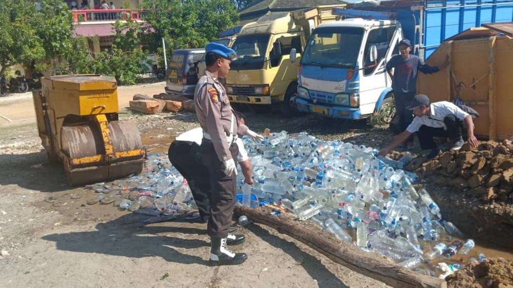Ribuan botol miras berbagai jenis dan merek yanng dimusnahkan di halaman belakang Mapolres Blora, Selasa ( 28/05/2019)