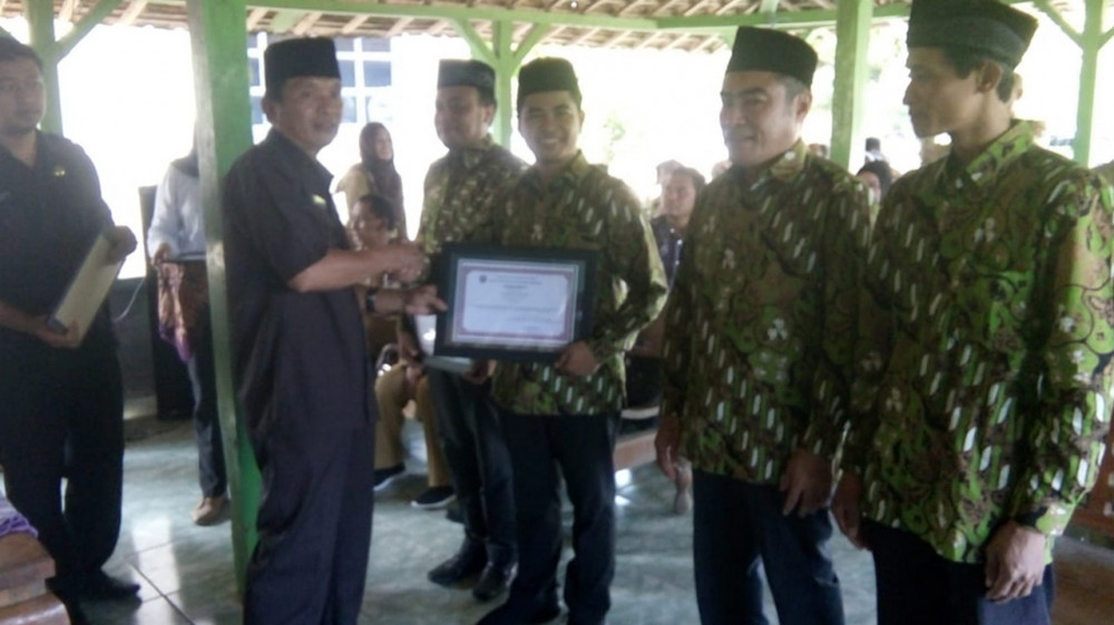 Wakil Bupati Bojonegoro saat serahkan sertifikat kepada pengelola Rumah Produksi Cacing di SPR Mega Jaya Dusun Ngantru Desa Sekaran Kecamata Kasiman. Selasa (28/05/2019)