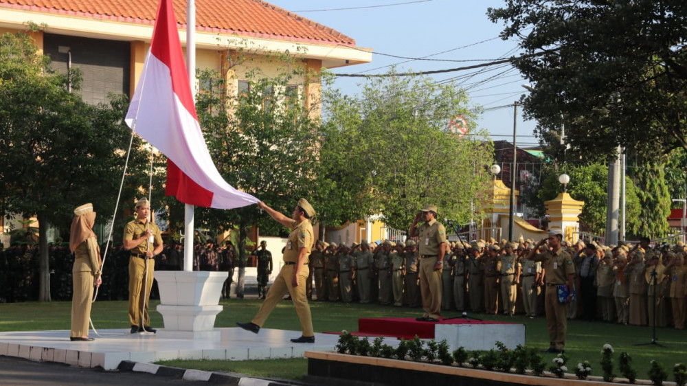 Upacara peringatan Hari Lahir Pancasila di halaman Kantor Sekretariat Daerah (Setda) Kabupaten Blora. Sabtu (01/06/2019)