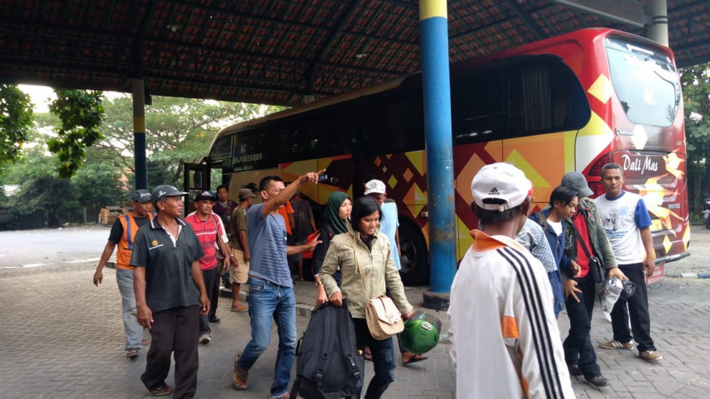 Kedatangan Penumpang di Terminal Rajekwesi Bojonegoro pada Sabtu (01/06/2019)