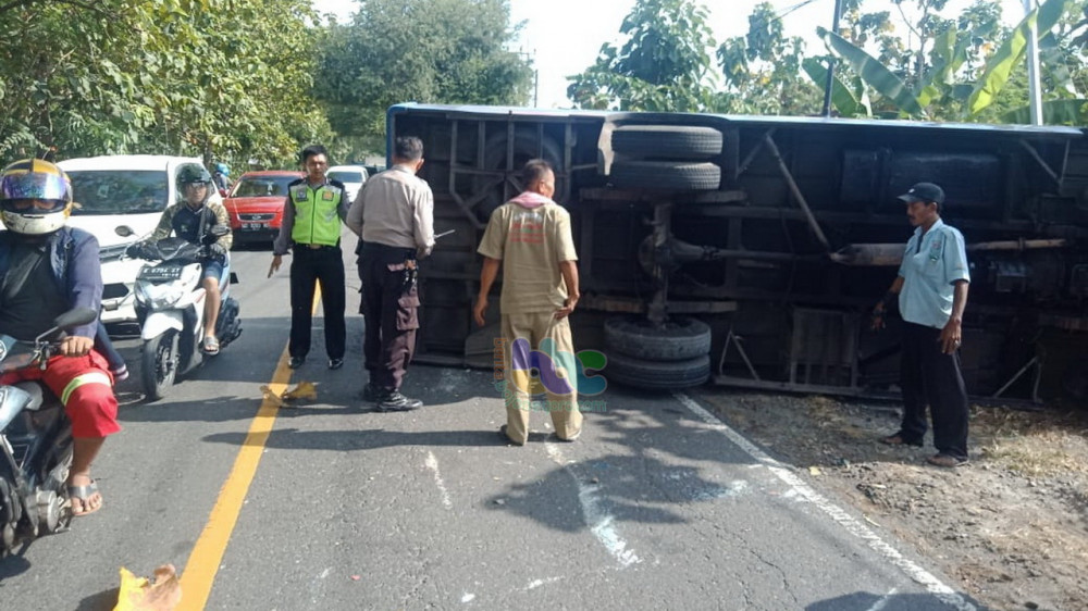 Bus Gunung Mas Terguling di Margomulyo Bojonegoro, Sopir dan Seorang Penumpang Luka-Luka