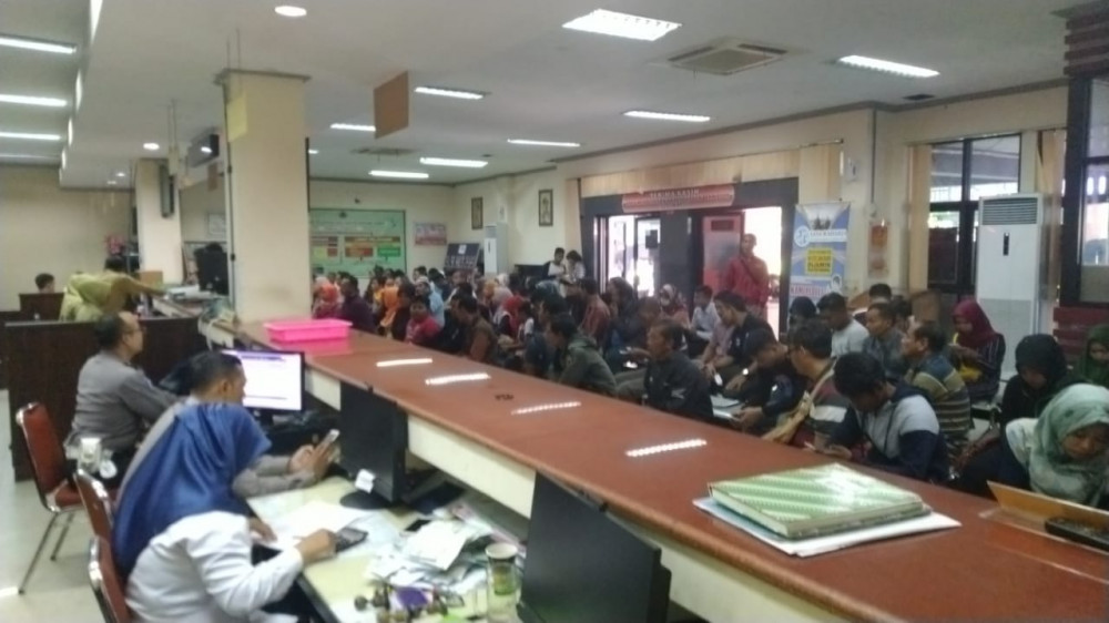Blora - Pada hari pertama kerja pasca cuti bersama lebaran, Senin (10/06/2019) ratusan wajib pajak (WP) penuhi Kantor Bersama Sistem Administrasi Manunggal Satu Atap (Samsat) Blora. Para wajib pajak tersebut datang untuk mengurus pajak kendaraan bermotor.