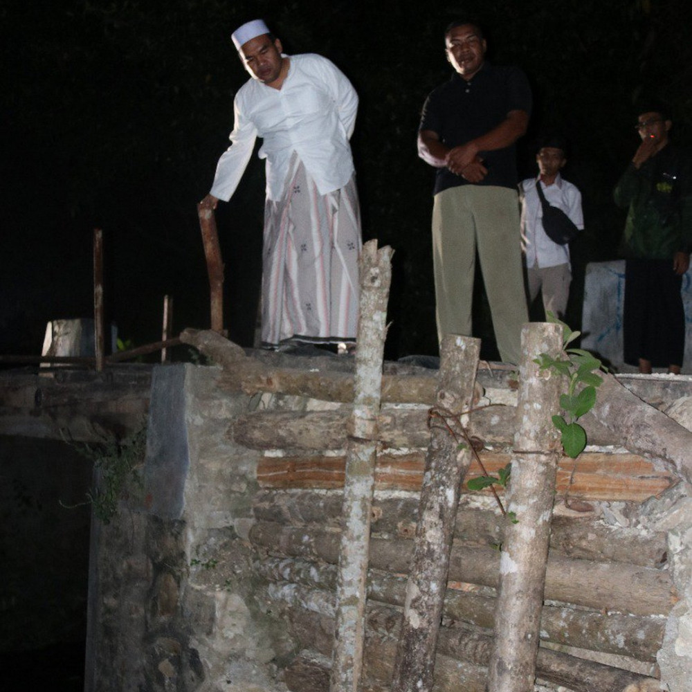 Wakil Bupati dalam peninjauan Jembatan Kedunggede yang berada di jalan penghubung Desa Getas menuju Desa Nglebak didampingi Kepala Desa Getas, Subowo. Jembatan yang terbuat dari kayu ini beberapa waktu lalu sempat longsor pada sisi pondasinya sehingga butuh pembangunan.