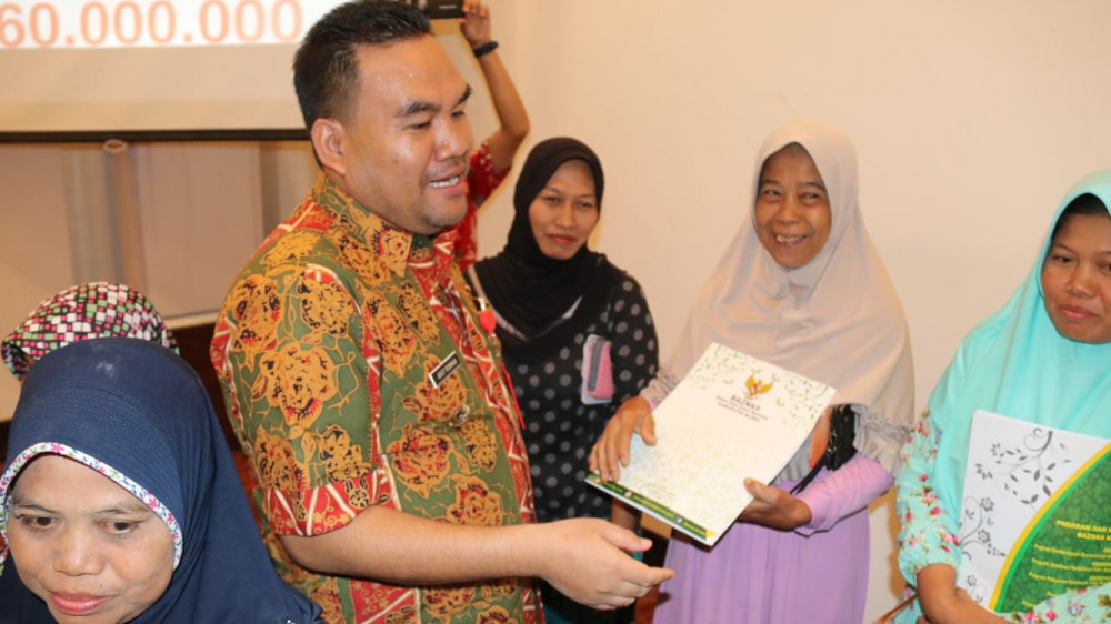 Blora - Sekretaris Jendral Kementerian Desa, Pembangunan Daerah Tertinggal, dan Transmigrasi (Kemendes PDTT), Anwar Sanusi, pada Rabu (19/06/2019), bertempat di Ballroom Java Same Hotel Cepu, serahkan bantuan usaha yang danannya bersumber dari Badan Amil Zakat Nasional (Baznas) Kabupaten Blora, kepada 10 warga Desa Wado Kecamatan Kedungtuban Kabupaten Blora.