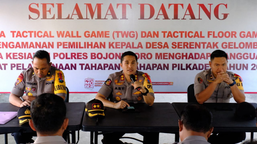 “Dari Polres Bojonegoro sudah memapping tingkat kerawanan dari 154 desa yang melaksanakan Pilkades nanti, dari hasil mapping kerawanan kita simulasikan melalui TWG dan TFG ini, sehingga anggota sudah paham dan harus mengetahui cara bertindak dan langkah yang diambil saat terjadi kejadian yang tidak diinginkan, “ kata Kapolres.