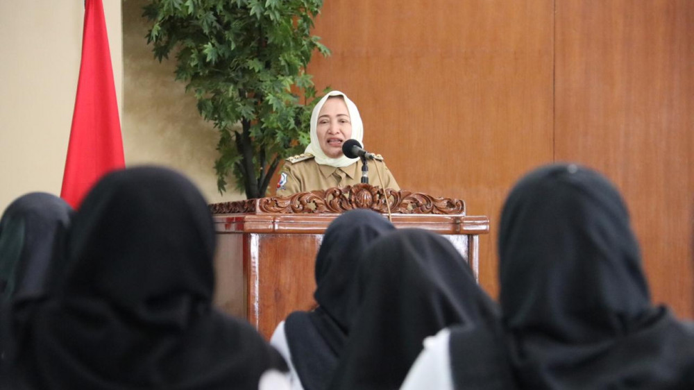 Bupati Bojonegoro, Dr Hj Anna Muawanah, saat beri sambutan pembukaan diklat PPGDON di Gedung Angling Dharma Pemkab Bojonegoro, Senin (24/06/2019)