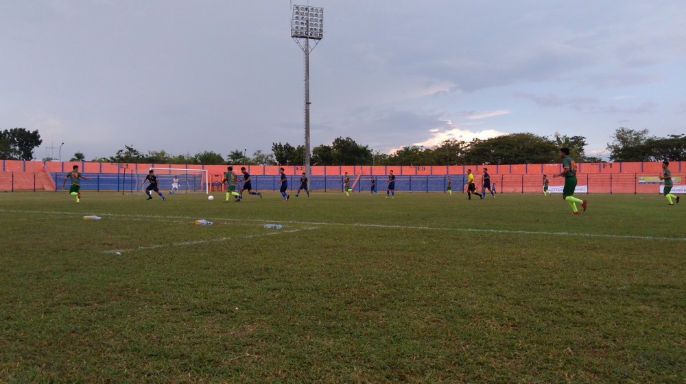 Bojonegoro - Dalam babak penyisihan Grup J, Pekan Olahraga Provinsi (Porprov) Jatim 2019, yang digelar di Stadion Letjend H Soedirman, Bojonegoro, Kamis (04/07/2019). Kesebelasan Porprov Kabupaten Bojonegoro harus puas bermain imbang 1-1 (1-1) saat melawan Malang Kota.