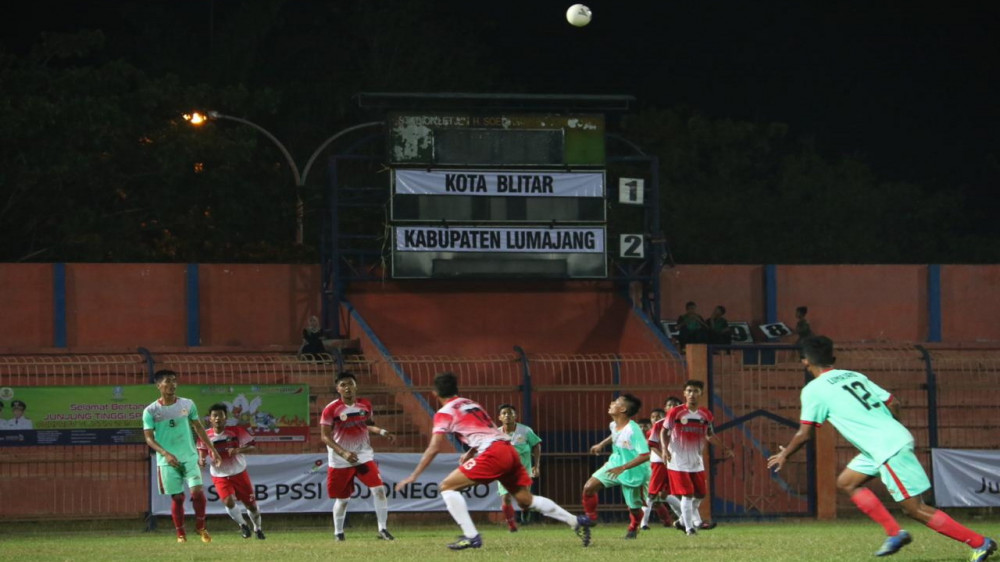 Pertandingan penyisihan Grup J, Pekan Olahraga Provinsi (Porprov) Jatim 2019, yang digelar di Stadion Letjend H Soedirman Bojonegoro antara Kesebelasan Kota Blitar vs Kabupaten Lumajang, Kamis (04/07/2019) malam.