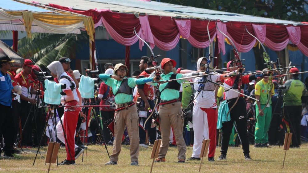 Bojonegoro - Cabang olahraga panahan Kabupaten Bojonegoeo yang berlaga dalam Pekan Olahraga Provinsi (Porprov) VI Jawa Timur (Jatim) 2019, memulai pertandingannya pada Senin (08/07/2019) di lapangan Sekolah Model Terpadu (SMT) Bojonegoro. Di hari pertama, cabor panahan baru berhasil meraih dua medali perunggu.