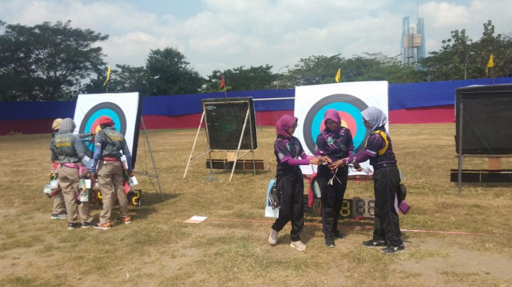 Bojonegoro - Atlet Panahan Kabupaten Bojonegoro yang berlaga dalam Pekan Olahraga Provinsi (Porprov) VI Jawa Timur (Jatim) 2019, pada pertandingan hari kedua, Selasa (09/07/2019) di lapangan Sekolah Model Terpadu (SMT) Bojonegoro, akhirnya berhasil menymbang medali emas, melalui nomor recurve beregu putri.