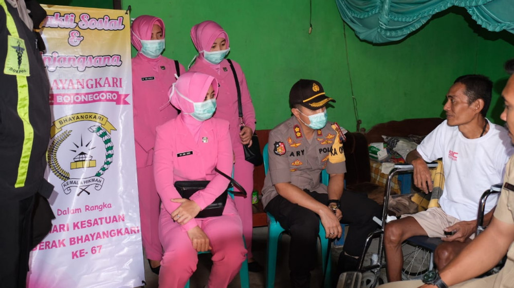 Bojonegoro - Dalam rangka peringatan Hari Bhayangkara ke-73, Kapolres Bojonegoro, AKBP Ary Fadli SIK MH MSi, bersama anggota dan Bhayangkari Cabang Bojonegoro, pada Senin (08/07/2019), laksanakan anjangsana ke rumah Sunaryo (50), Warga Dusun Tikun Desa Gondang Kecamatan Gondang Kabupaten Bojonegoro, yang menderita TBC.