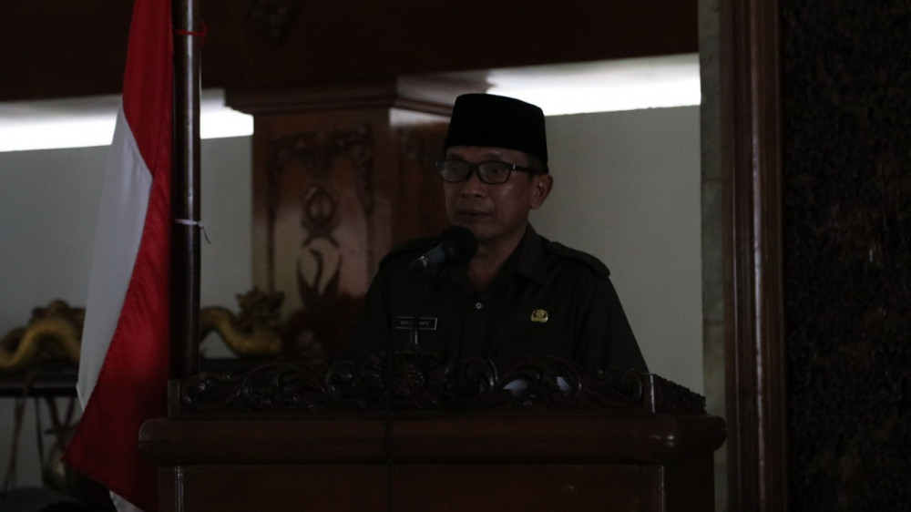Wakil Bupati Bojonegoro, Drs Budi Irawanto MPd, saat beri sambutan dalam acara sosialisasi Ketaspenan dan pembekalan Pegawai Negeri Sipil (PNS) di lingkup Pemerintah Kabupaten Bojonegoro. Selasa (09/07/2019)