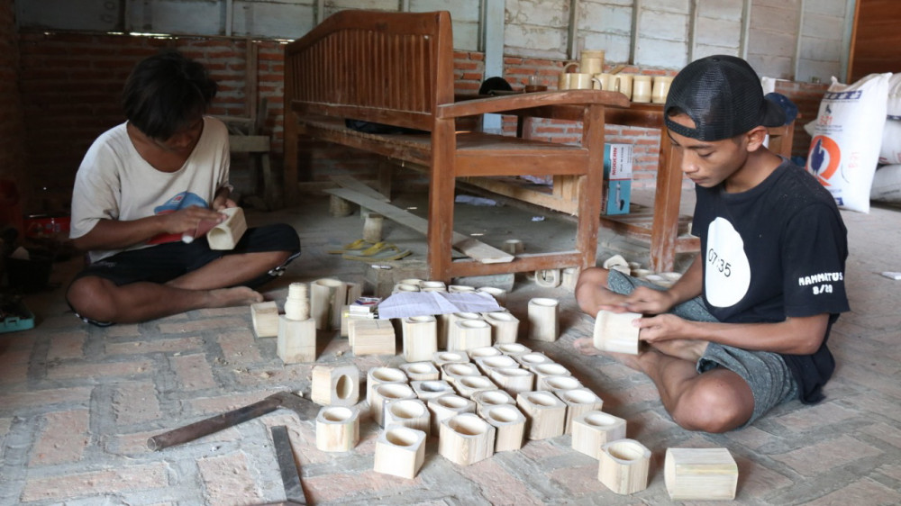 Lulus Nur Rohman (19) dan Teguh Wahyudi (17) keduanya pemuda asal Dukuh Bengir Desa Keser RT 002 RW 005 Kecamatan Tunjungan Kabupaten Blora ini memanfaatkan batang bambu menjadi kerajinan bernilai jual ekonomi.