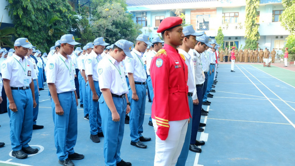 Siswa-Siswi peserta upacara pembukaan Masa Pengenalan Lingkungan Sekolah (MPLS) di SMA Negeri 1 Bojonegoro. Senin (15/07/2019)