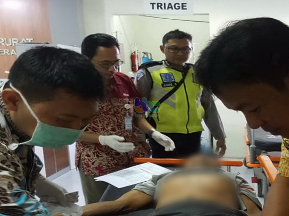 Pengendara sepeda motor Suzuki Shogun nomor polisi W 5420 HD, Lasiman (55), saat dalam perawatan medis di RSUD Sumberrejo. Minggu (21/07/2019)