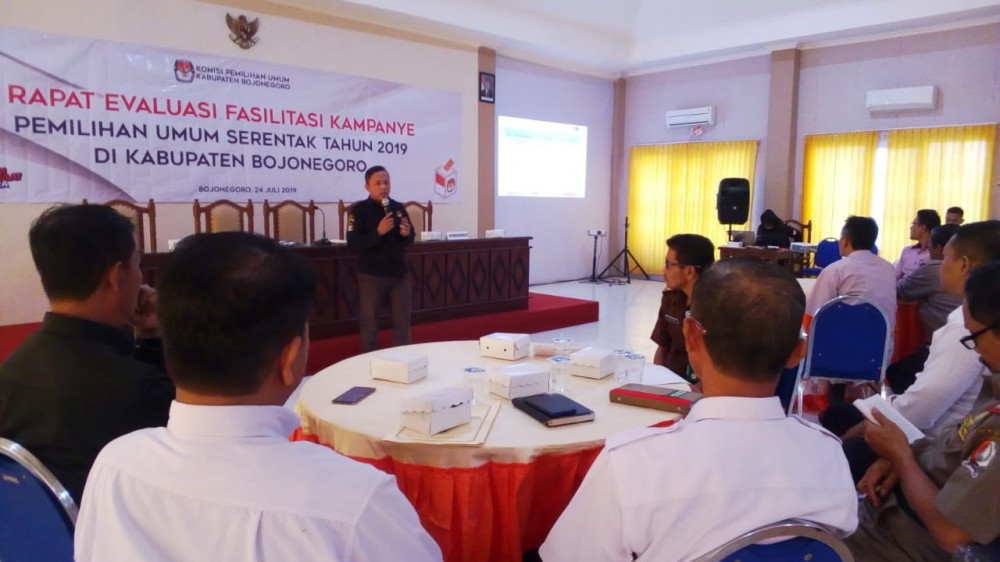 Rapat Evaluasi Fasilitasi Kampanye dalam Pemilihan Umum serentak 2019, yang digelar KPU Kabupaten Bojonegoro. Rabu (24/07/2019)