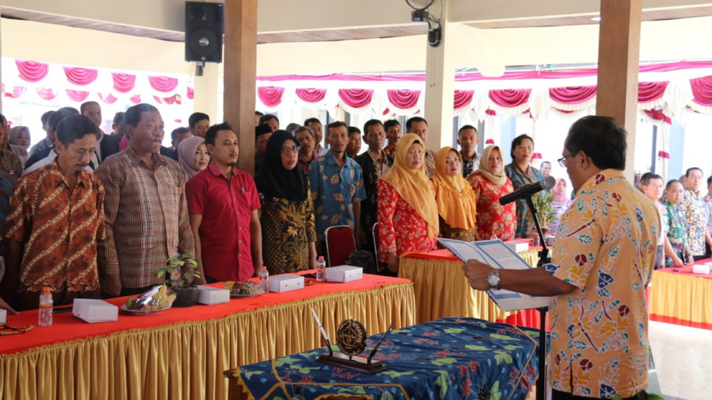Bupati Djoko Nugroho dalam sambutannya menyampaikan bahwa Pilkades mempunyai potensi gangguan keamanan yang tinggi karena sekup wilayahnya sempit. Oleh karena itu Bupati meminta agar seluruh calon Kades bisa berkomitmen menjaga keamanan dan kondusifitas wilayah selama tahapan Pilkades serentak berlangsung.