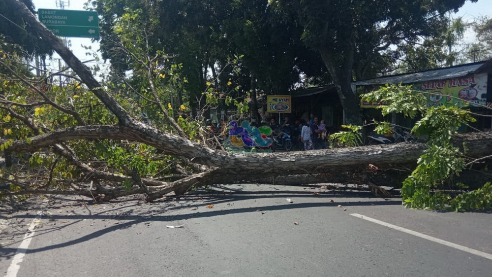 “Kejadian tersebut sempat membuat jalur tersendat, karena batang pohon tersebut melintang atau menghalangi jalan raya Bojonegoro-Babat,” kata Kapolsek.