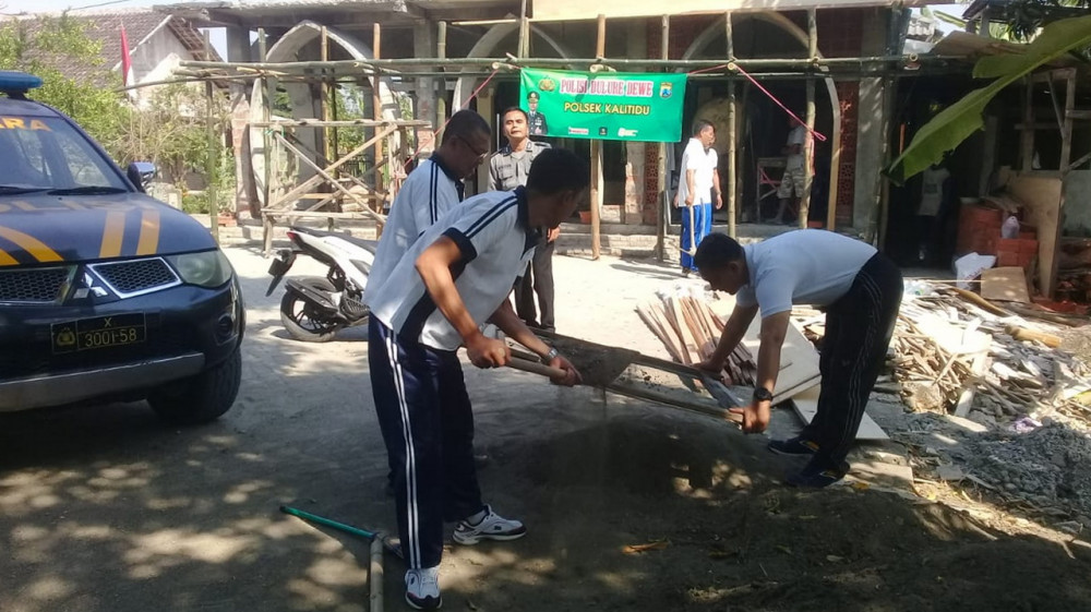 Selain melaksanakan kerja bakti dilapangan Desa Kalitidu, Kapolsek dan anggota juga melaksanakan kerja bakti di Masjid Roudhotul Jannah Desa Grebegan Kecamatan Kalitidu yang saat ini sedang dilakukan tahap renovasi untuk perbaikan masjid.