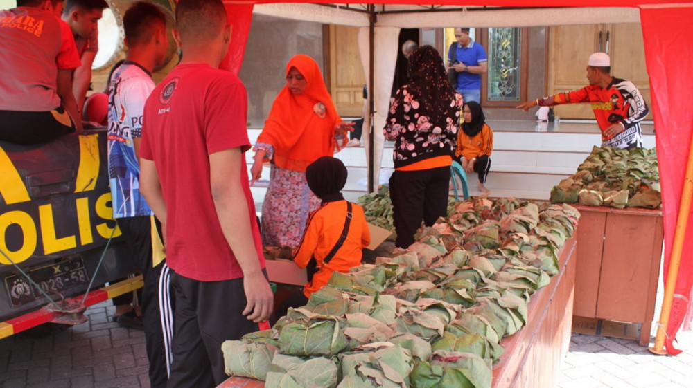 1.500 Paket Daging Kurban Polres Bojonegoro Dibungkus Menggunakan Daun Jati