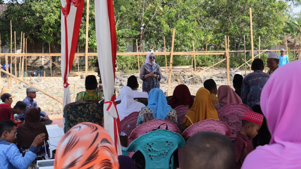 Bupati Bojonegoro Dr Hj Anna Muawanah, saat beri sambutan dalam acara peletakan batu pertama pembangunan Masjid Al Muttaqin di Dusun Klumpang Desa Sendangharjo Kecamatan Ngasem Bojonegoro. Kamis (15/08/2019)