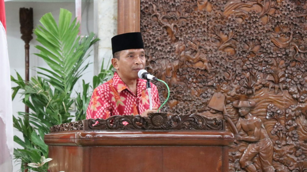 Wakil Bupati Bojonegoro, Drs Budi Irawanto MPd, saat beri sambutan dalam acara Resepsi HUT Kemerdekaan RI tingkat Kabupaten Bojonegoro di Pendapa Pemkab Bojonegoro, Sabtu (17/08/2018).