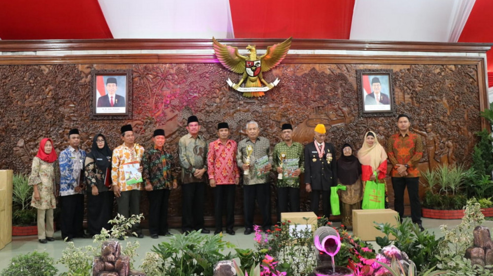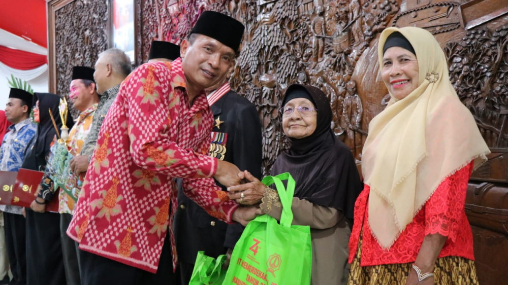 Wakil Bupati juga menyerahkan penghargaan kepada Pejuang Veteran yaitu kepada Ibu Fatonah dan Bapak Sujono.