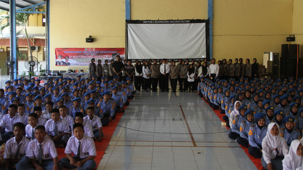Kegiatan tersebut dipimpin senior Polwan Polres Bojonegoro, AKP Sri Ismawati, selaku Kasubbag Humas Polres Bojonegoro, dihadiri juga Kepala PGRI 2 Bojonegoro, Mulyono MM MPd para guru dan siswa siswi SMK PGRI 2.