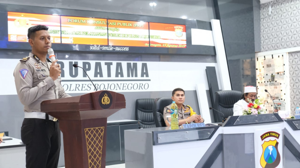 Forum Konsultasi Publik (FKP) terkait Standar Pelayanan Publik di Polres Bojonegoro, yang digelar di Ruang Rapat Utama (Rupatama) Mapolres Bojonegoro. Jumat (23/08/2019)