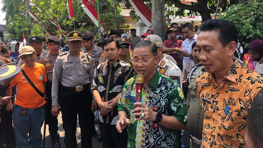 Asisten Pemerintahan dan Kesejahteraan Rakyat, Djoko Lukito SSos MM, saat menemui para pengunjuk rasa di depan depan Pendapa Pemkab Bojonegoro. Kamis (29/08/2019)
