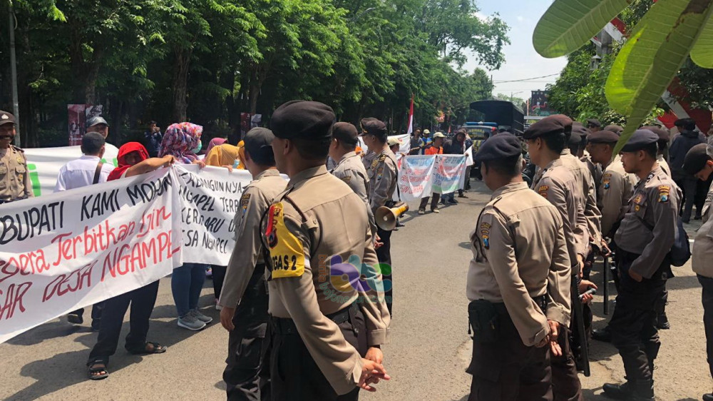 Unjuk rasa (Unras) atau aksi damai warga masyarakat Desa Ngampel Kecamatan Kapas Kabupaten Bojonegoro, di depan Pendapa Pemkab Bojonegoro. Kamis (29/08/2019)